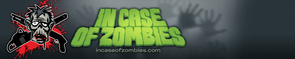 Here’s a cool website that sells zombie-themed clothes, stickers, and “Zombie Defense Boxes” which are glass cases with “In Case of Zombies, Break Glass” stenciled on the front, and appropriate items (ranging from Twinkies and Red Bull to machetes and actual machine guns) housed inside.