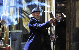 Romero proves once again that, while many can film a zombie apocalypse, he is the master of populating it with interesting characters in thought-provoking situations.  Survival is the story of (fictional?) Plum Island– a small island off the New England coast, exclusively inhabited by two clans of Irish ancestry who have always hated the other.  (As if to emphasize their isolation, the residents of Plum Island have retained their Irish brogues.)