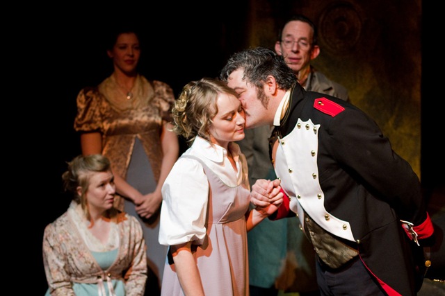 There is room, in the play’s opening sequences, for us to learn what Laura likes or dislikes when she is told she should consider marrying her father’s friend, General Spielsdorf (awesomely played by Brian Amidel, who is good in every Wildclaw production I’ve seen him in).  If Laura’s reaction were: “No!  I want to marry for love, and marrying a man twice my age is icky!”  Well, we would know what Laura wants.  But instead, her reaction to the news that she should get betrothed to an old guy is just sort of tepid and nonplussed.  (If, conversely, Laura were keen to marry the General, then Carmilla’s successful pitching of woo would force Laura to re-evaluate what she wants, which would also be interesting!)