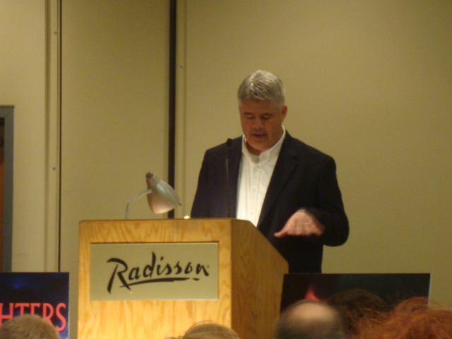 Joe McKinney accepts the Stoker for Best Novel.