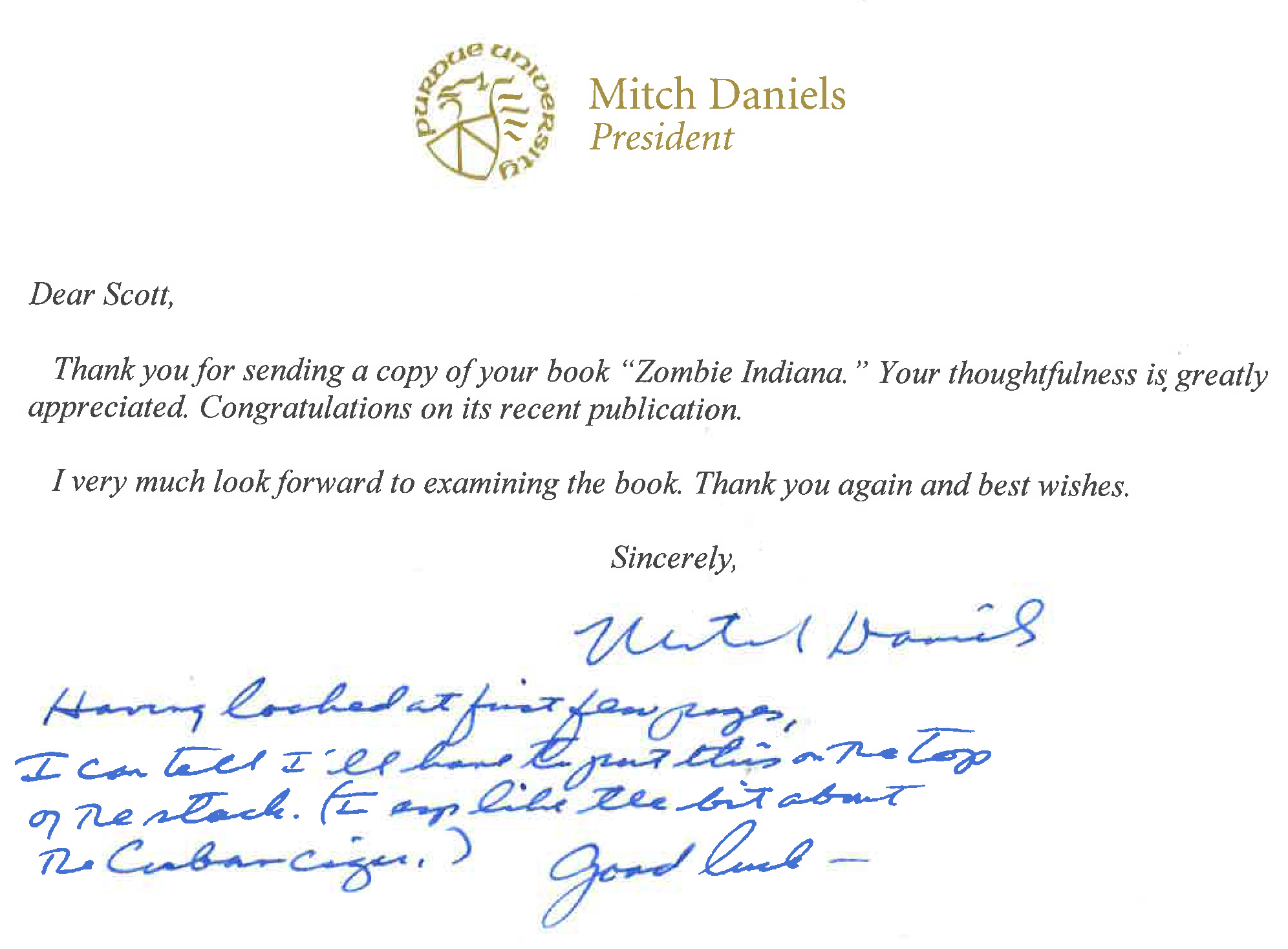 —Hank Burleson Mitch Daniels, Governor of Indiana, 2005-2013